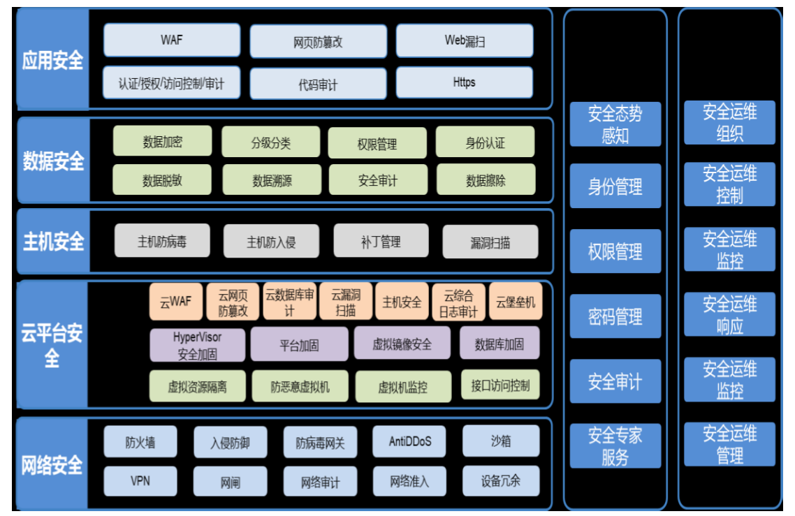 嚴格依據智慧城市的安全標準、等保三級標準、等保 2.0 的標準,劃分為安全技術體系、安全管理體系、安全運維體系。
