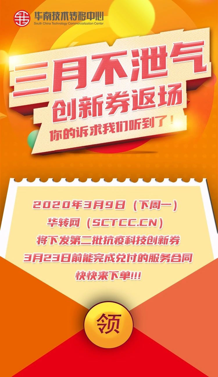 繼2020年2月26日華轉(zhuǎn)網(wǎng)發(fā)放首批800萬應(yīng)急創(chuàng)新券后,三月再次迎來好消息,預(yù)計(jì)于3月9日(周一),華轉(zhuǎn)網(wǎng)(sctcc.cn)將再次新增一批抗疫科技創(chuàng)新券額度發(fā)放。
